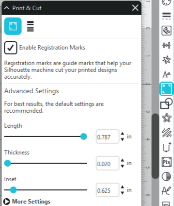 In the Print & Cut panel make sure the Enable Registration Marks box is checked.
